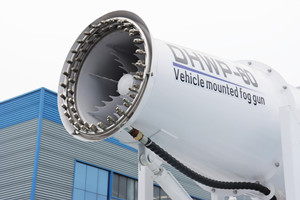 3、自主專利:霧炮具有自主專利,結構緊湊,射程遠,霧粒細小,覆蓋面積大,可手動或遙控操縱。