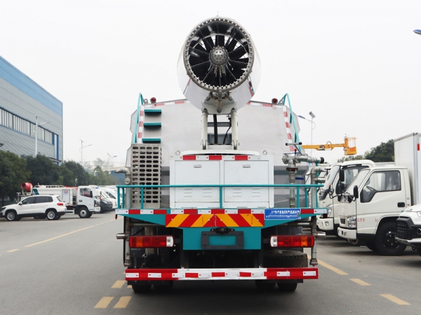 我公司抑塵車標配:前對沖、后灑、側噴、后置式工作平臺、平臺上有高壓水炮(可 360°旋轉,可調成柱狀最大射程 35 米,也可調成霧狀最大射程 15 米,(可調成: 直沖狀、大雨、中雨、小雨、毛毛雨),配備優質大功率專用灑水泵,雜物過濾網,國標通用 65 型消防接口(可通過消防栓加水),2 根引水膠管。水泵、取力器、球閥、濾網均為國家標準產品,主管道加粗,法蘭墊、法蘭盤加厚,前對沖,大通徑球閥,具有性能優良,工作可靠、效率高、流量大。尾部加裝霧炮能有效的對霧霾、灰塵進行有效的抑制效果。我公司生產的多功能抑塵車,利用水霧吸附空氣中的粉塵,淡化空氣中的污染顆粒物濃度,達到(固塵、降塵、清潔凈化空氣)的效果,有效緩解城市塵粒空氣污染現象并可用于公共場所(增濕、降溫、消毒、除臭)。可以改善空氣質量,用于降低 PM10、PM2.5,被譽為 PM2.5 治理神器。同時也可以改善工礦作業物料堆放、建筑施工和爆破拆除引起的灰塵污染,亦可用于城市大氣治理、農藥噴灑、消毒等。