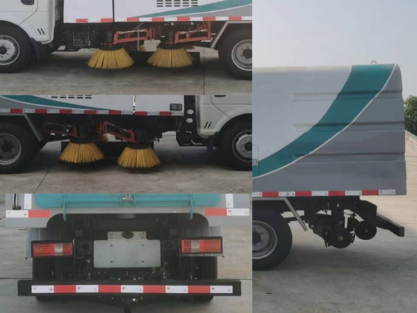 3. 采用“中置四掃盤+噴霧降塵裝置+中心隔板+后置吸嘴”的結(jié)構(gòu)布局,讓清掃過程中砂石不在飛濺揚(yáng)塵,此布局便于清掃裝置與吸盤的調(diào)整與維護(hù),轉(zhuǎn)場(chǎng)作業(yè)時(shí)整車通過性好。