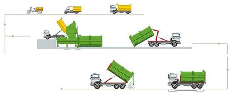后平臺(tái)分體式水平壓縮垃圾處理站設(shè)備,一般采用一機(jī)兩箱的配置,即一個(gè)壓縮主機(jī)兩個(gè)壓縮垃圾箱。該設(shè)備主要建設(shè)在生活小區(qū)、街道、農(nóng)村、鄉(xiāng)鎮(zhèn)等,對(duì)垃圾的集中清理轉(zhuǎn)運(yùn)。